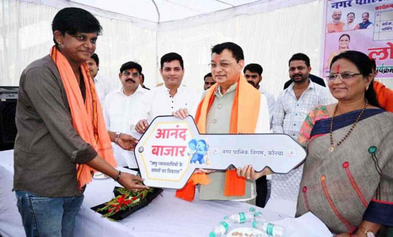 रायपुर, 13 अप्रैल 2026 उद्योग, श्रम, आबकारी एवं सार्वजनिक उपक्रम मंत्री लखनलाल देवांगन ने अपने जन्म दिवस के अवसर पर कोरबा के लघु व्यवसायियों को एक बड़ा तोहफा देते हुये उन्हें आनंद बाजार वेंडिंग जोन की सौगात प्रदान की है। अब सड़क के किनारे फुटपाथ आदि पर व्यवसाय करने वाले इन लघु व्यवसायियों को सुविधापूर्ण स्थाई दुकानें मिल चुकी हैं, अब उन्हें बार-बार दुकान हटा दिये जाने का डर भी नहीं सतायेगा तथा निश्चिंत हो कर अपने व्यवसाय का संचालन कर सकेंगे। इस अवसर पर लोकार्पण कार्यक्रम की अध्यक्षता महापौर संजूदेवी राजपूत ने की, वहीं सभापति नूतन सिंह ठाकुर, पार्षद नरेन्द्र देवांगन सहित अन्य पार्षदगण व जनप्रतिनिधिगण विशेष रूप से उपस्थित थे।