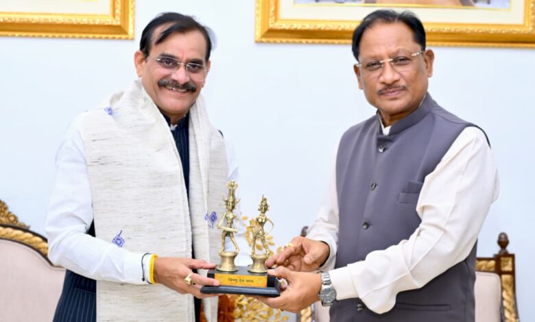 रायपुर, 26 अप्रैल 2026 मुख्यमंत्री विष्णु देव साय से राजधानी रायपुर स्थित मुख्यमंत्री निवास कार्यालय में लोकसभा सांसद विष्णु दत्त शर्मा ने सौजन्य मुलाकात की। मुख्यमंत्री साय ने शर्मा का आत्मीय स्वागत करते हुए उन्हें शॉल एवं बस्तर आर्ट की आकर्षक प्रतिकृति भेंट कर सम्मानित किया। इस दौरान उनके बीच विभिन्न समसामयिक विषयों पर चर्चा हुई।