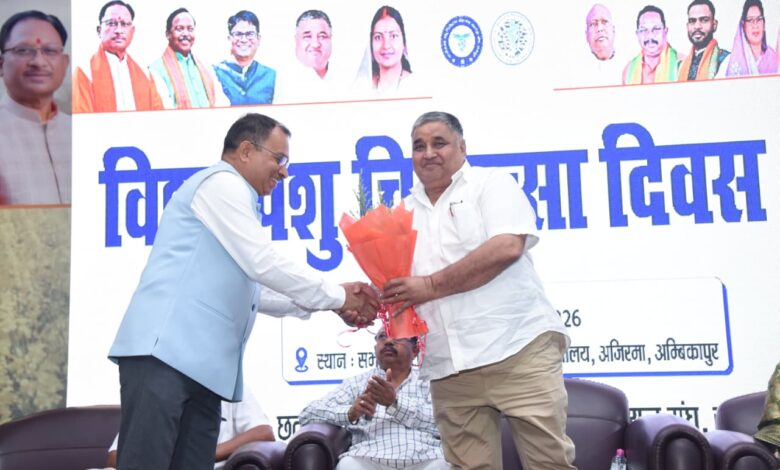 रायपुर, 26 अप्रैल 2026 पर्यटन एवं संस्कृति मंत्री राजेश अग्रवाल ने कहा कि मानव सभ्यता के आरंभ से ही पशु हमारे जीवन का अभिन्न अंग रहे हैं। उन्होंने कहा कि पशुओं का संरक्षण और संवर्धन न केवल हमारी सांस्कृतिक विरासत का आधार है, बल्कि यह ग्रामीण अर्थव्यवस्था की मजबूती का प्रमुख स्तंभ भी है। उन्होंने पशु चिकित्सकों को समाज के मूक प्राणियों का सच्चा संरक्षक” बताते हुए कहा कि उनकी सेवा, समर्पण और करुणा से न केवल पशुओं का जीवन सुरक्षित होता है, बल्कि यह मानवता के प्रति भी एक महान योगदान है। उन्होंने मूक प्राणियों, बेजुबान जानवरों, की सेवा और सुरक्षा में समर्पित पशु चिकित्सकों, पशु प्रेमियों और संस्थाओं की सराहना की।